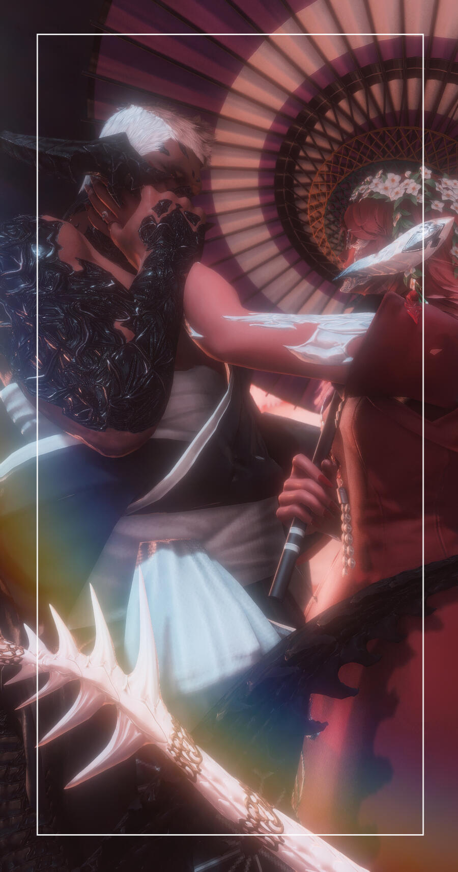 If desired, this tier can include an NPC or OC of your choosing. The NPC can be customized to your preference, and anamnesis/glamourer/mare files need to be provided in advance for OCs or other player subjects who were otherwise unable to be present for the shooting. This tier may even be used for a self-indulgent shot of 2 NPCs, or 2 OCs, so long as the circumstance is discussed in advance.
