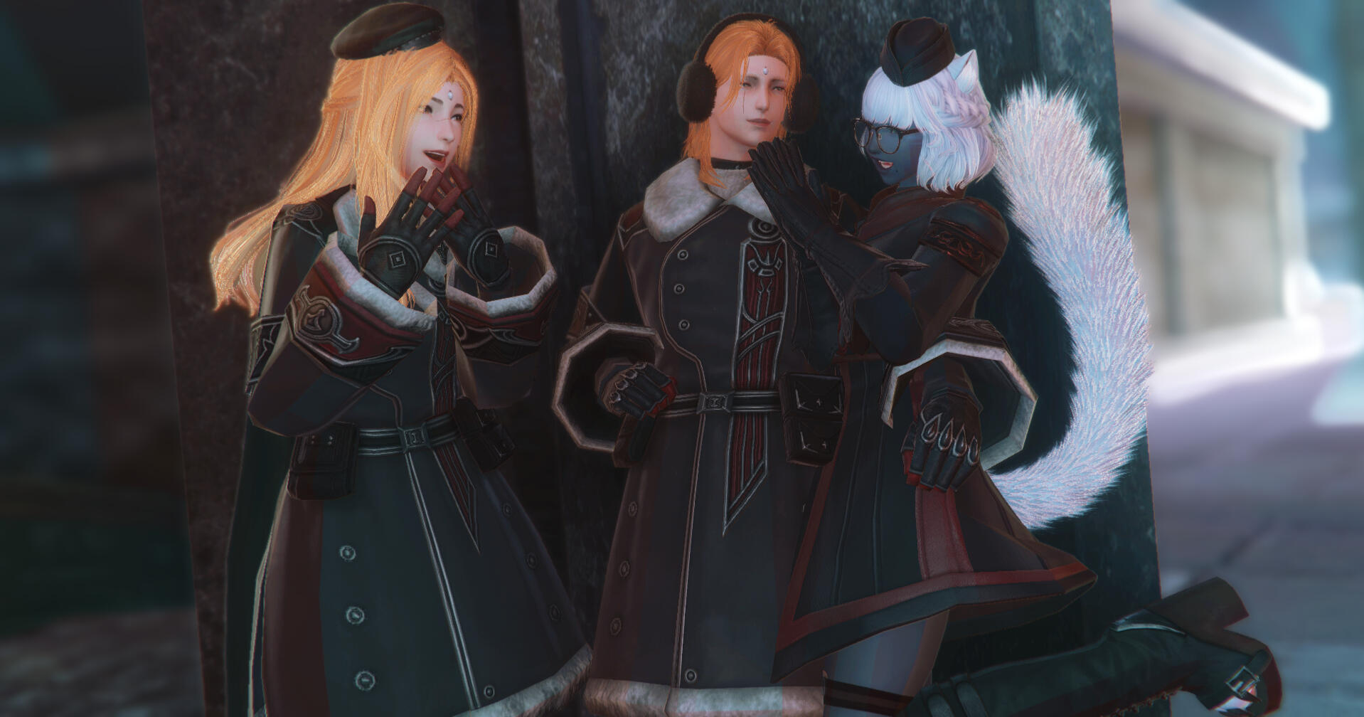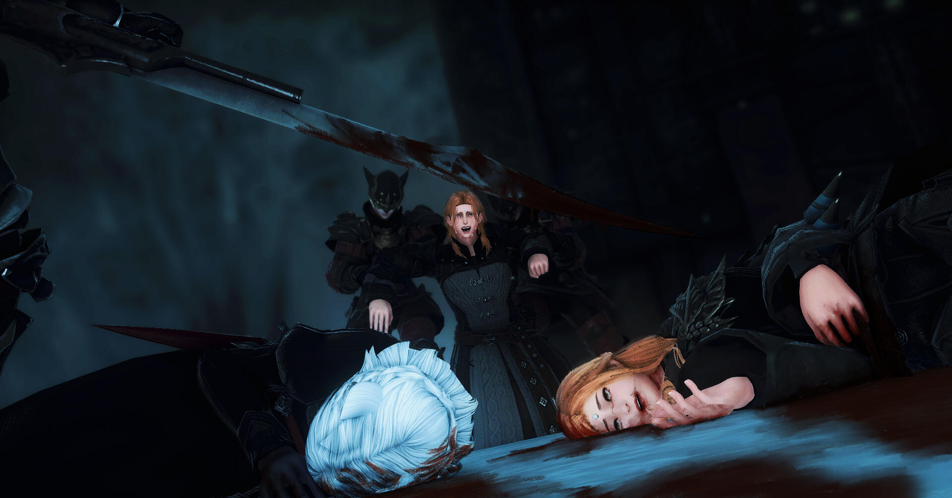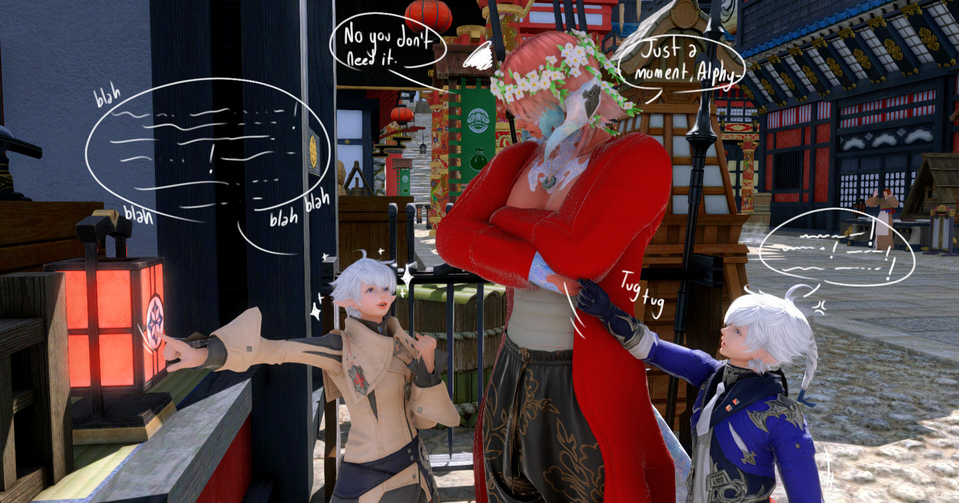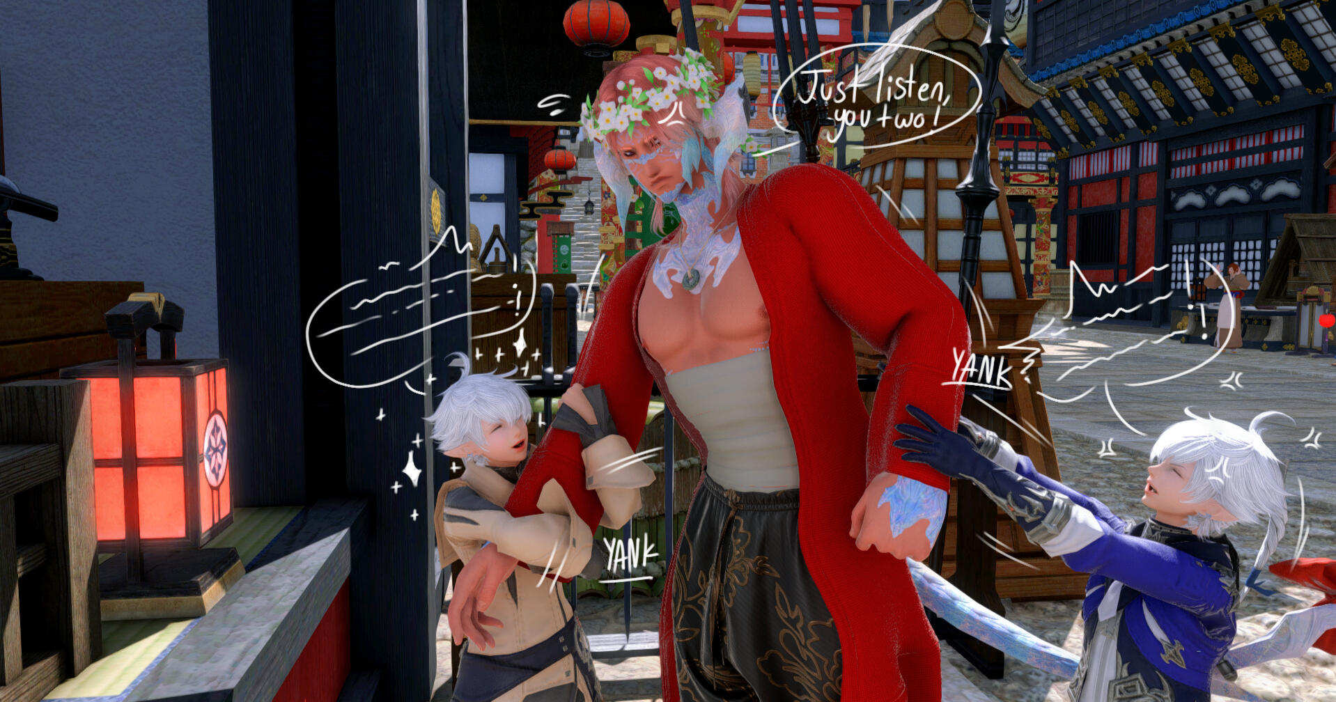 Due to the nature of large group shots, these will take longer and cost more. Do keep in mind that you'll need a lengthier time slot and that these can get quite pricey. This tier can also include NPCs and OCs. The NPCs can be customized to your preference, and anamnesis/glamourer/mare files need to be provided in advance for OCs or other player subjects who were otherwise unable to be present for the shooting. This tier may even be used for a self-indulgent shot of 3 or more NPCs or OCs alone, so long as the circumstance is discussed in advance.