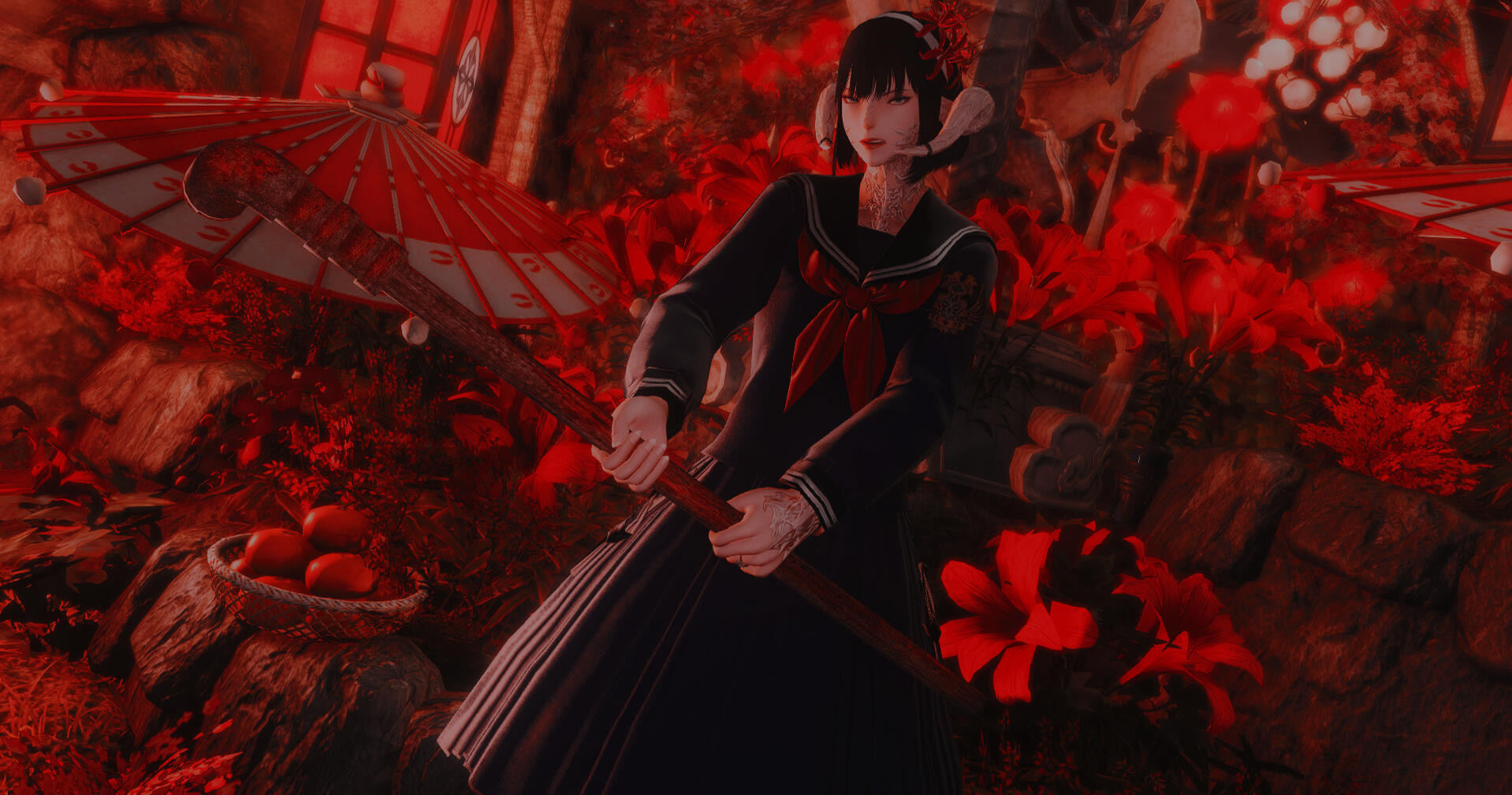 Can be done with vanilla poses, a pre-made anamnesis pose, or a uniquely made anamnesis pose by me. With or without Gshade.